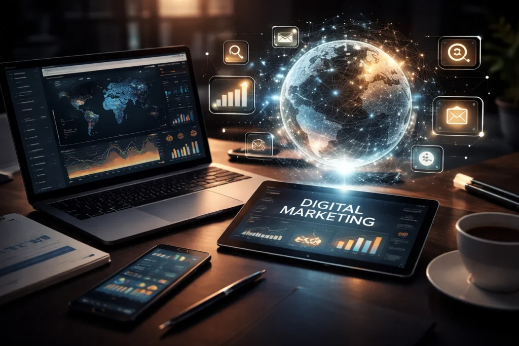 [vc_row gap=”30″][vc_column][vc_custom_heading text=”Marketing strategies for those looking to thrive in the digital world.” font_container=”tag:h2|text_align:center” use_theme_fonts=”yes”][vc_separator color=”custom” border_width=”2″ el_width=”10″ accent_color=”#0072bc” css=”.vc_custom_1556916003832{margin-top: 35px !important;}”][/vc_column][/vc_row][vc_row gap=”30″][vc_column width=”1/2″][vc_custom_heading text=”We explore horizons with a creative strategy to take you to a new height of success.” font_container=”tag:h3|font_size:34|text_align:left|color:%230072bc|line_height:1.3″ use_theme_fonts=”yes”][/vc_column][vc_column width=”1/2″][vc_column_text]Creating an effective digital marketing strategy that works also means finding the right balance between what you would like to do and what you can actually do. Once we develop a strategy best suited for your business, our team will help you carry out all the heavy lifting.[/vc_column_text][/vc_column][/vc_row][vc_row][vc_column][ultimate_spacer height=”60″][/vc_column][/vc_row][vc_row gap=”30″][vc_column width=”1/3″][ultimate_spacer height=”25″][arrowpress_icon_box icon_style=”default” icon_fontawesome=”fa fa-newspaper-o” big_title=”CONTENT MARKETING” icon_color=”#e5a31e”]Attract leads and close sales with tailored campaigns powered by agile strategy, creative and amplification solutions.[/arrowpress_icon_box][/vc_column][vc_column width=”1/3″][ultimate_spacer height=”25″][arrowpress_icon_box icon_style=”default” icon_fontawesome=”fa fa-envelope-open-o” big_title=”EMAIL MARKETING” icon_color=”#e5a31e”]We can design these emails to be direct, with attractive supporting images and clear call-to-actions. In doing so we are able to trigger clicks and drive traffic to your page.[/arrowpress_icon_box][/vc_column][vc_column width=”1/3″][ultimate_spacer height=”25″][arrowpress_icon_box icon_style=”default” icon_fontawesome=”fa fa-comments-o” big_title=”SOCIAL MEDIA MARKETING” icon_color=”#e5a31e”]We develop a strategic plan not only to communicate your core businesses values but also your products while maintaining integrity through adhering to your branding guides.[/arrowpress_icon_box][/vc_column][/vc_row][vc_row full_width=”stretch_row” gap=”30″ css=”.vc_custom_1556917005270{padding-top: 60px !important;padding-bottom: 60px !important;background-color: #f8f7f7 !important;}”][vc_column width=”1/2″][vc_custom_heading text=”Our team is fueled by a bold spirit: